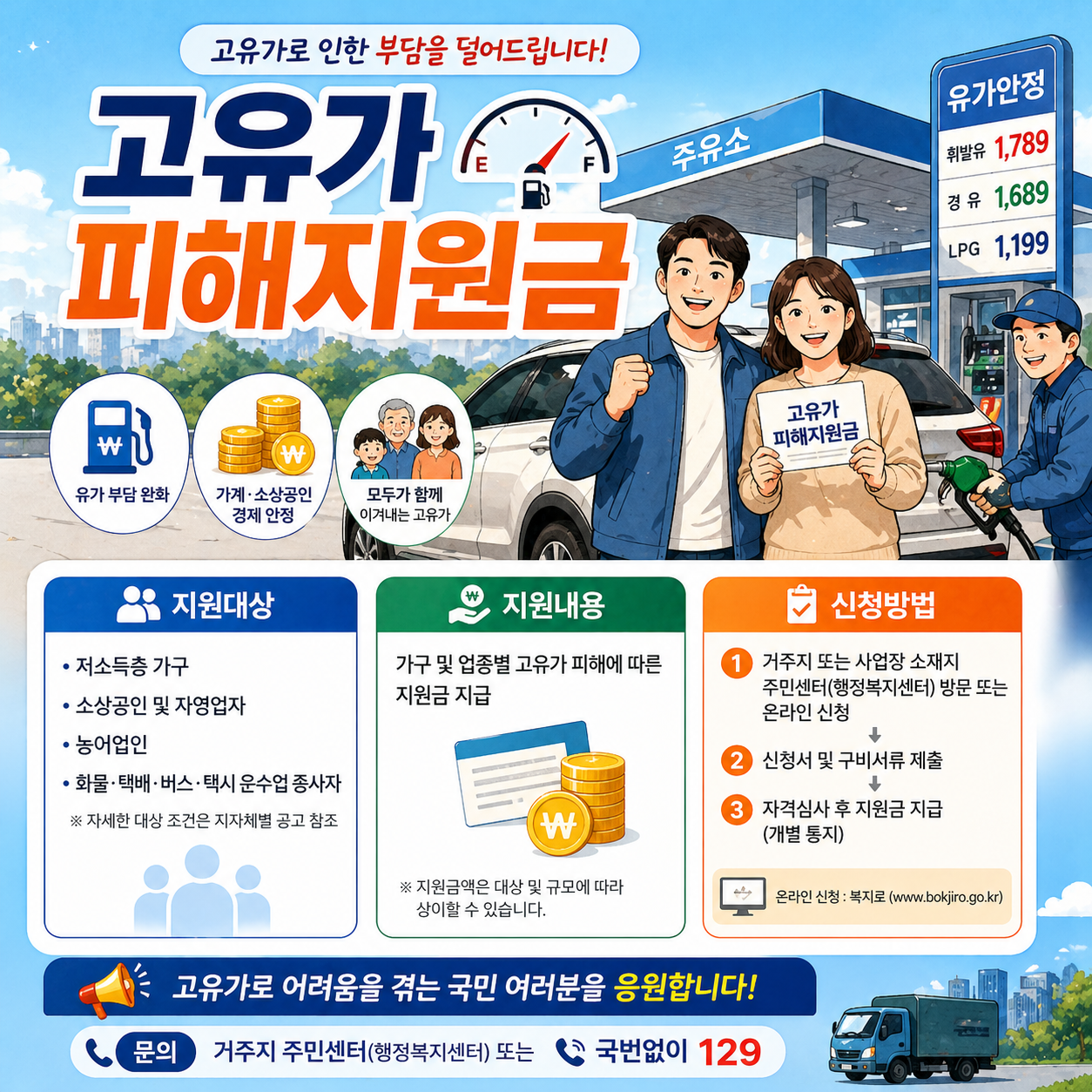 자동차가 없어도 받을 수 있는 지원금이 있습니다. 고유가 피해지원금은 유류비 직접 부담자뿐 아니라 외식비·장바구니 물가 상승으로 타격을 받은 서민 가구 전반을 대상으로 설계된 제도입니다. 저도 처음엔 "차도 없는데 내가 대상이 맞나?" 싶었는데, 알고 보니 기준이 생각보다 넓었습니다.